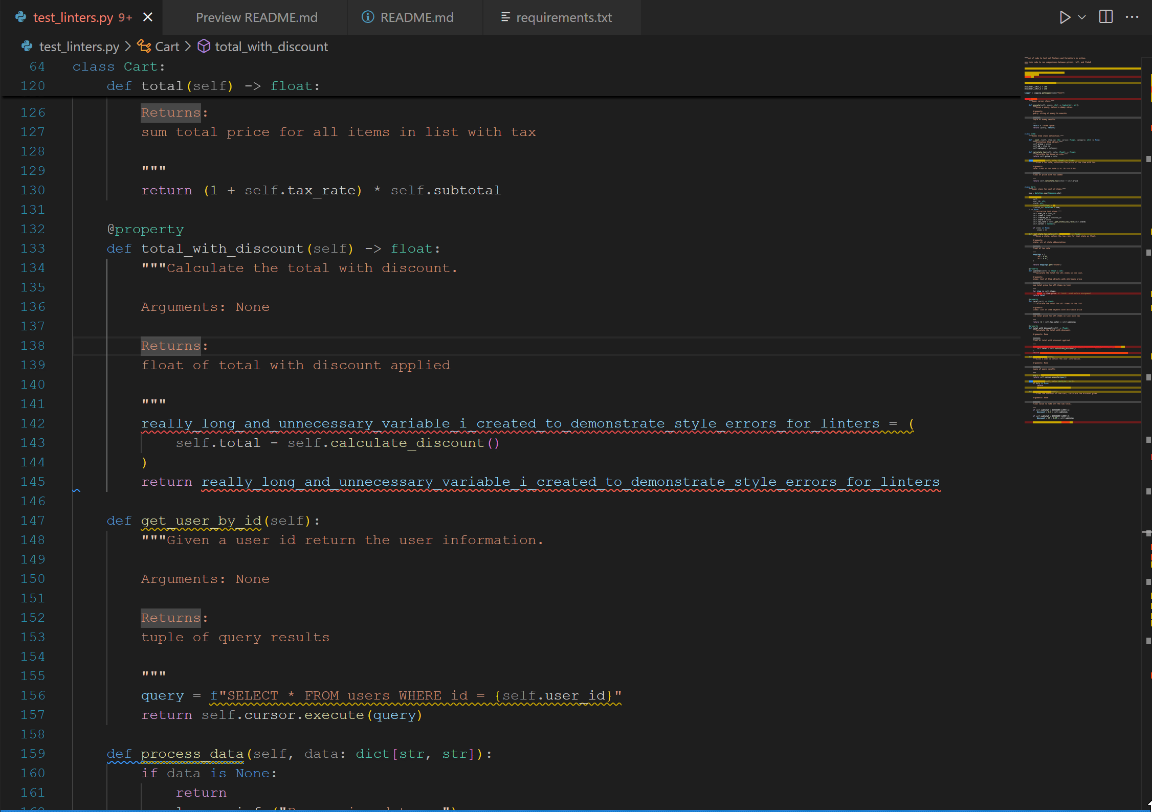 For a look at the code I used to test these out, see my github repo. Let's start with linters.